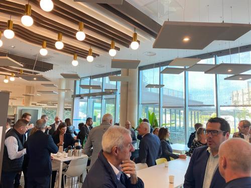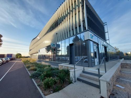 - Visite des locaux : open spaces, salle de sport, retaurant... Un bâtiment conçu pour le bien être de ses salariés et la sobriété énergétique avec des panneaux photovoltaïques leur permettant 30% d'autoconsommation.