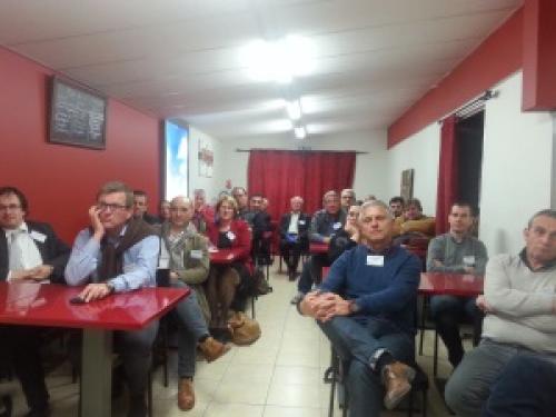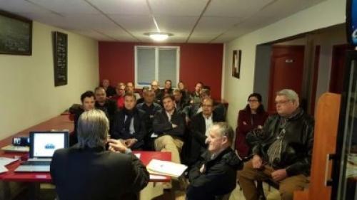 Jeudi 2 avril, Le Fleming a accueilli l'assemblée générale annuelle de l'association, en présence de M Pascal Gourdel, Conseiller Municipal Délégué au Commerce. Un nouveau Bureau a été élu pour 2 mandats. de gauche à droite : Hubert Audemard (Croco Immobilier), Jean-Pierre Pascal (LIB Industrie), Ludovic De Caslou (Baurès), Michel Gabelotaud (Renault Trucks), Franck Dubuc (IGE), Roland Isselé (Sud Radiologie), Patrick Carmona (Saur)