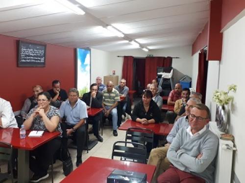 Mecredi 15 mars, Assemblée Générale 2022. Après avoir remercié les partenaires territoriaux présents, notre Président nous a exposé son rapport moral 2022 : 61 adhérents en 2022 20 événements : cafés, rencontres interclubs, visites d'entreprises, afterworks, rendez-vous numérique... Plus de rendez-vous interclubs Renfort de la communication Des aménagements réalisés : pose de caméras, changement de circulation, arrivée du réseau TanGo L'association des entreprises de la ZI Saint Césaire, par ses actions, confirme sa volonté d'être aux côtés des entreprises. En 2023, les membres du bureau continueront de travailler sur un programme d'animations diversifié, des événements thématiques, une dynamique de groupe et des rencontres avec les partenaires : CCI Gard, Nîmes Métropole, Forces de Police... Enfin, le changement d'adresse de l'association a été officialisé. Nous sommes désormais domicilié dans les nouveaux locaux de la CCI du Gard qui nous accompagne depuis plus de 15 ans dans l'animation de l'association.793 chemin du mas de Vignolles, 30 900 Nîmes Nous avons clôturé cet événement par un cocktail préparé par la Brasserie Le Fleming qui nous a accueilli.