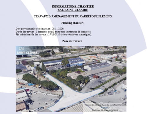 ASSO ZI ST CESAIRE - FLASH SPECIAL Nous venons d'avoir confirmation que des travaux de réfection de tranchées d'eau potable, sollicités par NIMES METROPOLE, se dérouleront du 10 Février au 24 Février, sous la responsabilité de la SAUR. Pas d'inquiétude, la circulation sera maintenue, sur 1/2 chaussée, avec une vitesse adaptée à 30km/h. Nous comptons sur votre prudence et votre civisme à l'égard du personnel et des usagers.